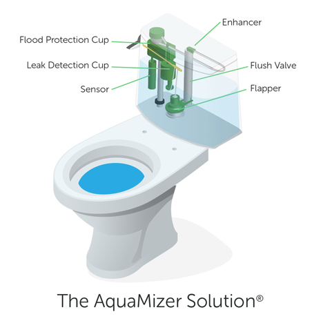 Introducing Aqua Mizer, the remarkable Green Solution to preventing leaks, floods and water waste from toilets. Our patented system uses unique, groundbreaking technology for a sustainable, efficient solution that reduces water waste by as much as 50% and prevents catastrophic floods, with average product-cost break-even in less than 6 months!