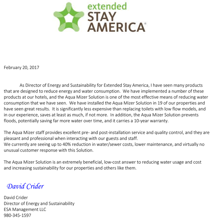 Testimonial Letter - Extended Stay America